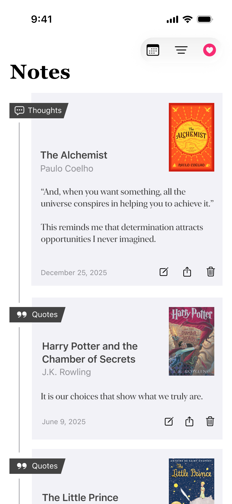 Whether it's a powerful passage or a personal insight, you can store and revisit your favorite ideas anytime.