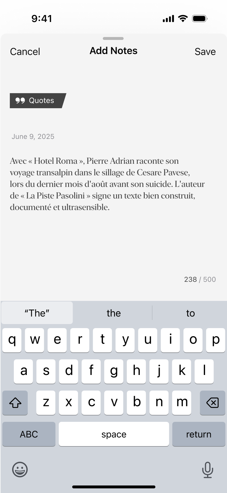 Capture meaningful quotes from books and keep your thoughts in one place. BookMiles allows you to take a photo of a page and extract text, making it easy to save quotes without typing.